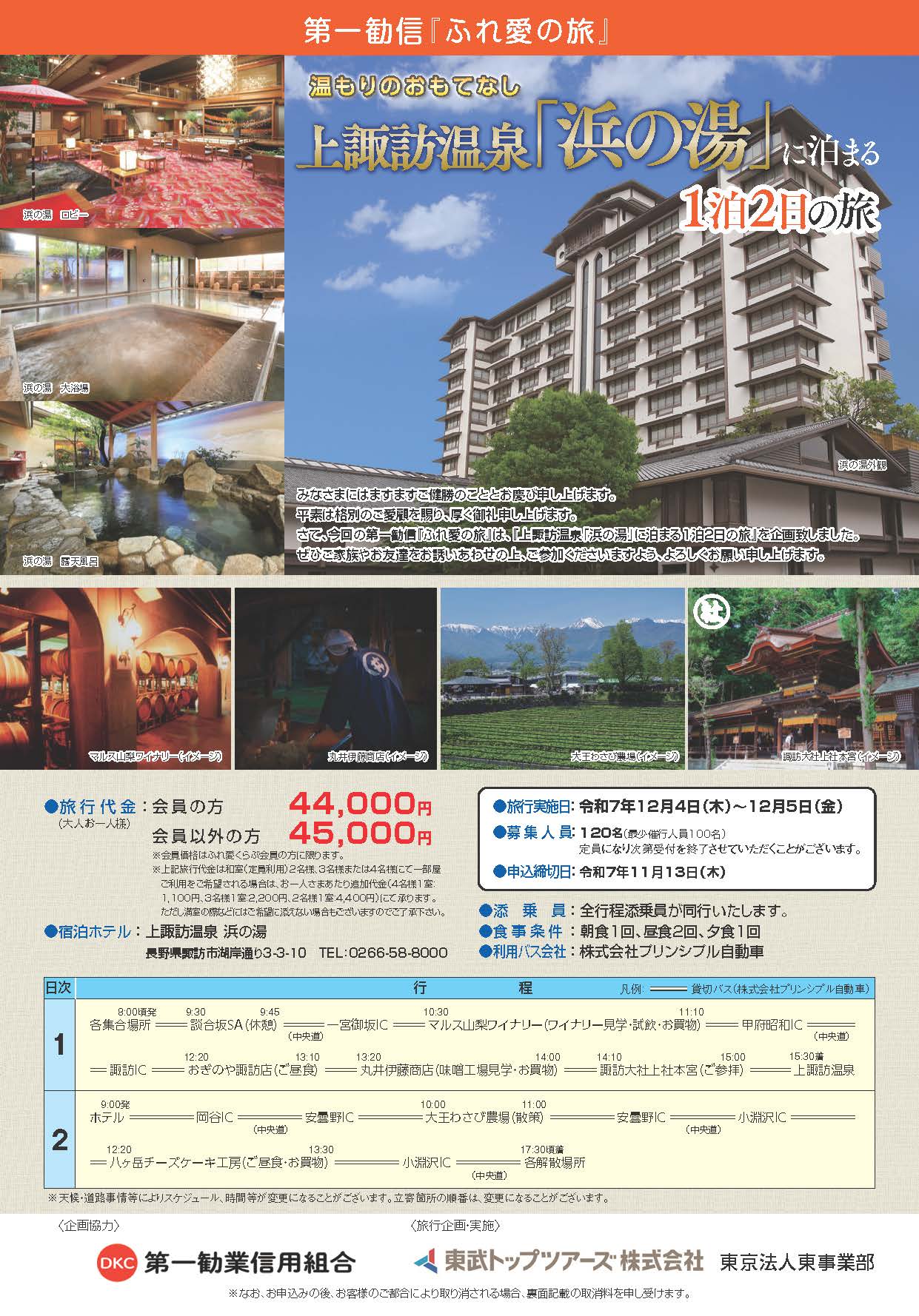 2025年12月4日(木)~5日(金)にかけて上諏訪温泉「浜の湯」に泊まる1泊2日の旅を実施いたしました。