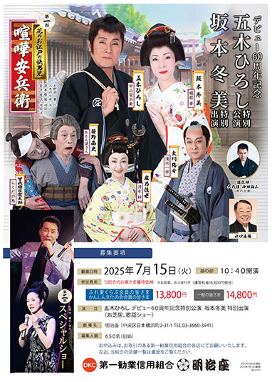 令和7年7月15日(火)に明治座を貸し切り、五木ひろしデビュー60周年記念特別講演 坂本冬美特別出演をお客さまにお楽しみいただきました。